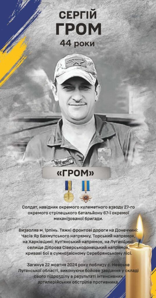 Мужній воїн, з великим досвідом і витримкою, з твердими переконаннями про те, що треба стояти проти ворога до останнього, Сергій загинув за нашу свободу, за мир і спокій в домівках, за кожного з нас.