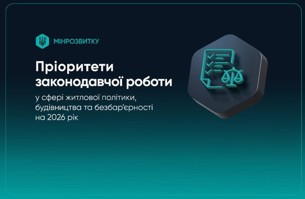 Міністерство розвитку громад та територій України сформувало перелік пріоритетних законодавчих ініціатив у сфері житлової політики, будівництва і впровадження безбарʼєрності на 2026 рік.