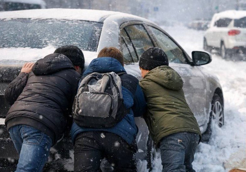 Вчора на вулиці Київській небайдужі хлопці (ймовірно підлітки) допомагали водіям виштовхувати автомобілі із заметів снігу